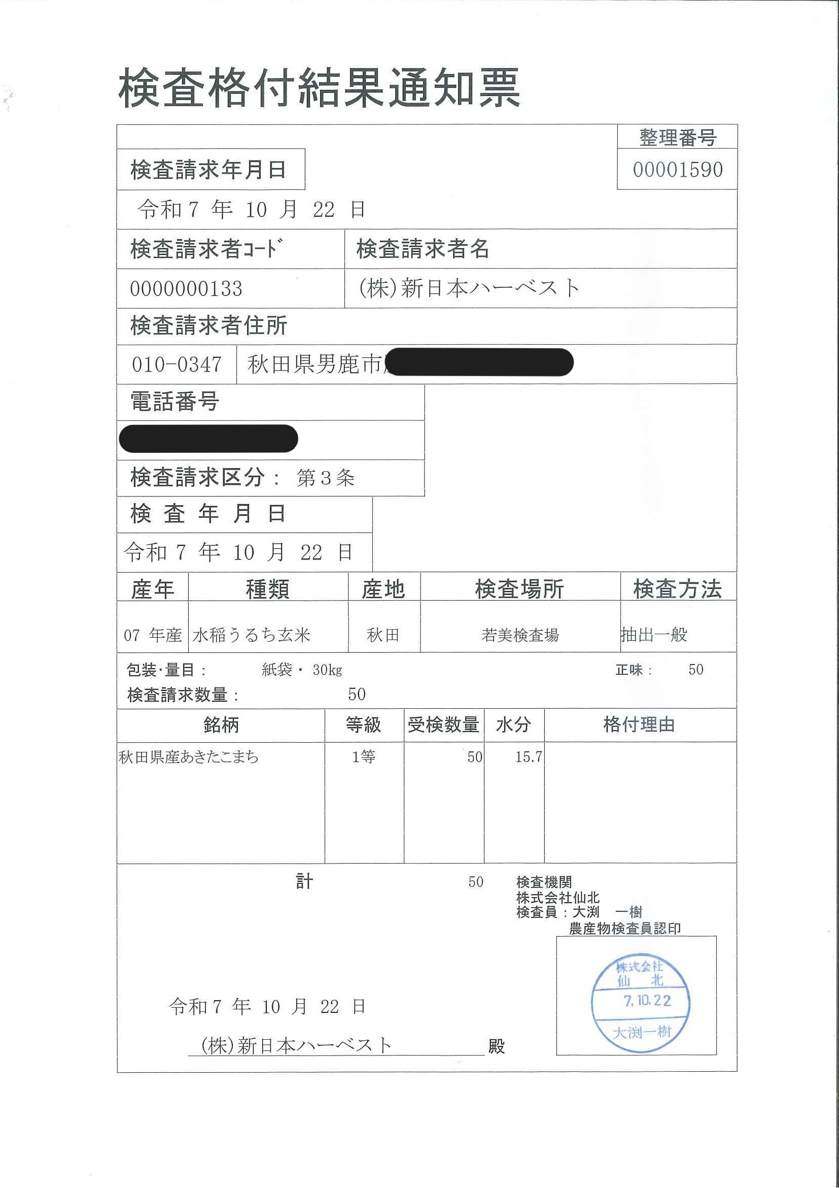 色彩選別機:虫食い被害粒や着色米などを玄米色彩選別機にて除去し白いお米だけにします。農家ならではの新鮮なおいしさを堪能頂けます。